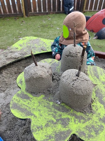 Småbarnsområdet vårt, Blåbærtoppen, ble totaloppgradert høsten 2025. Blåbærtoppen er skjermet med et gjerde så de yngste barna kan få leke og utforske i sitt eget tempo. På området har det kommet ny sandkasse med lekehus og sklie, og i tillegg har det kommet en buss som vi kan leke at vi reiser land og strand rundt med, eller bare en tur til Liertoppen 😊
