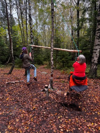 Høsten 2025 fikk vi besøk av Tor Egil Bagøien fra Friluftsakademiet på planleggingsdagen vår. Da lærte vi hvordan vi kan bygge vår egen naturlekeplass med hjelp av naturmaterialer og tau. I løpet av denne dagen lagde personalet hele tolv nye lekeapparater rundt Gapahuken vår. Gjett om barna ble glade da de fikk se alt vi hadde bygget!